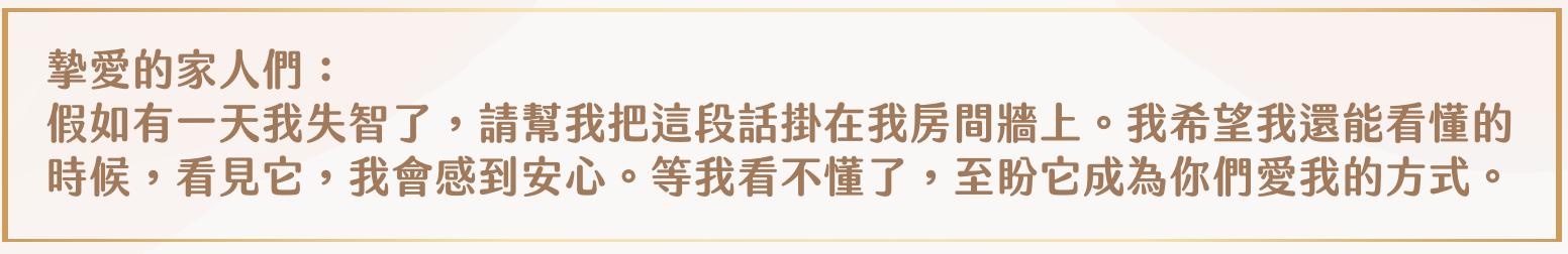 1. 每次你走進來,請先叫我的名字,告訴我你是誰。別問我:「你知道我是誰嗎?」我可能真的不知道,那會讓我慌張。 2. 如果我活在另一個時間軸裡,請不要急著把我拉回來,請陪我待在那裡。也許那裡我比較快樂。 3. 如果我說我們要去老朋友家吃飯,或者提到早已過世的親人,請微笑,跟我一起相信那是真的。 4. 別和我爭辯。那個時候的我,真的分不清你說的對還是我記得的對。請用愛,讓我贏一回。 5. 如果我認不出你了,請別受傷。不是我不愛你。是我的腦迴迷路了。 6. 如果我忘了怎麼用湯匙,別急著餵我,請幫我繫上圍兜兜,試試看能不能讓我用手吃些東西。我小時候就是這樣吃的。 7. 若你看到我焦慮、難過,請握著我的手。不要告訴我「不要想太多」,請陪我一起靜靜地坐著,或許可以一起唱首歌。 8. 請不要把我當小孩。即使我失去了語言或理解,我的靈魂還是大人。 9. 請讓我繼續做我喜歡的事:喝喝小酒、看點YouTube,聽有聲聖經。這可以勾起我許多美好的回憶。 10. 好漢愛提當年勇,即使你已經聽過無數次,那可能是我惟一還記得的。 11. 如果我突然情緒失控,請別怪我。試著找出我不安的原因,那裡可能藏著我說不出口的痛。 12. 請你用你希望被對待的方式對待我。那時候的我,也許只剩下被溫柔對待的感覺還在。 13. 家裡請常備一點零食。如果我發脾氣,有可能是餓了但不會說。 14. 如果你們在討論我,請當著我的面說,而不是像我不存在一樣。 15. 如果你已經無法全天候照顧我,請不要自責。那不是你的錯。我知道你愛我。 16. 當我住進機構,請記得來看我。你的臉,我可能忘了,但我記得那份熟悉的溫度。 17. 當我說錯人名、記錯事,請耐心一點。別歎氣、別皺眉,那不是我故意的。 18. 請讓我聽音樂。我喜歡的旋律,可能會比我的記憶更長壽。也請幫我戴上助聽器,我想聽得清楚。 19. 如果我喜歡把東西帶來帶去,請幫我把它們放回原位。我不是小偷,只是需要安全感。 20. 請盡可能帶我參加主日崇拜,我也許只是沉默地坐在角落,希望我仍享受那份敬虔與盼望。 21. 請別吝嗇擁抱和握手。那些身體的撫觸,也許比語言更有力量。 22. 最重要的是:請記得,我還是我。就算我不再是你記得的樣子,請記得,我仍然是你愛的那個人。 當我還能清楚地寫下這些句子時,我願意為未來的自己先做一點準備。 願我那時候,能被這樣對待;願我那時候,也還能感受到:我是有尊嚴的、被愛的,是上帝眼中完整的人。因為,連失智都無法將我們與天父的愛隔絕。 |