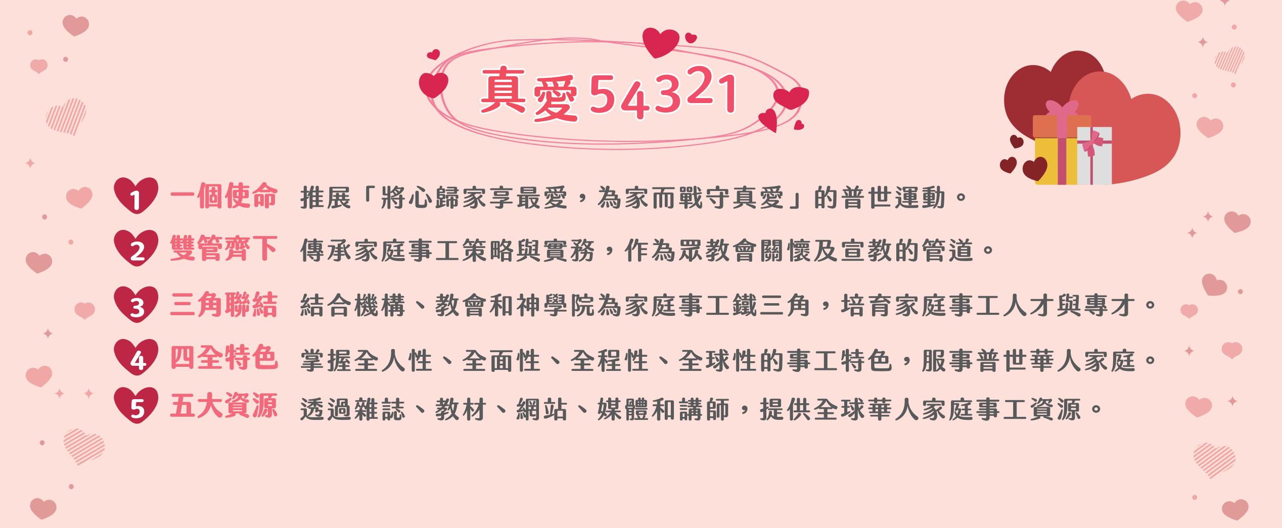 2024年起,「老師箴言」雲端系列講座啟航,邀請學養俱佳的長者分享生命智慧,讓跨世代對話成為家庭信仰傳承的一部分。「真愛」並與馬來西亞浸信會神學院合作,開辦歐洲、日本及創啟地區家庭講座與輔導碩士課程;6月,23週年實體感恩餐會與雲端特會登場。9月的「教牧夫妻中秋關懷休閒營」,溫馨深刻地服事教牧家庭。 2025年,與「瑞智社會福利基金會」合辦線上「失智家庭靈性關懷座談會」,走近高齡與失智家庭;與「世傳在家教育協會」合辦「在家教育難?不難!」特會登場,並啟動「在家教育事工」,回應快速興起的在家教育浪潮。5月的24週年實體餐會與雲端特會,凝聚了響應真愛家庭運動的有志之士,向主感恩,向人感謝,向前瞻望。同一年開始了將《真愛家庭雜誌》佳文及真愛講座之精華,以對談導覽方式推出視頻版及音頻版Podcast,廣受歡迎與肯定。另外,為眾教會量身打造的新版「推動家庭事工證書班」,及聯合全球近20家神學院共襄盛舉的「主修家庭事工博士班」,亦如火如荼籌劃並推動中。 邁向25週年:再一次將榮耀歸給上帝(2026) 2026年,真愛家庭運動邁過第25個年頭。 5月16日的25週年感恩特會,全球「真愛」夥伴及數百真愛之友再次歡聚在當初舉行成立感恩禮拜的國際大使命教會,回首這四分之一世紀中,上帝如何透過「真愛」多元又整全的專業家庭事工和資源,觸摸到無以數計的華人,幫助一個又一個家庭。 這25年來,我們看見: • 從一場感恩禮拜到遍佈多國的分會,因應各地的需要,在總會的資源及策略支援下,推展具有當地特色的家庭事工,造福普世華人家庭。 • 從一本雜誌到文字、影音與雲端平台,在洶洶疫情中開風氣之先,使教導和資源惠及全球。 • 從單一營會到17個家庭事工,全人、全程、全面供應家庭和教會的需要。 • 從一個團隊到連結教會、神學院與機構的「家庭事工鐵三角」,並發展出長遠且具體之合作策略,即將邁入又新又廣的新局。 世局劇變,事工轉型,然而,不變的是當年在成立禮拜中所領受的呼召: 在這破碎的世界,「攜手真愛,為家而戰」,讓每一個家都能因基督的真愛而被翻轉。 祈願這25年奇異恩典旅途的回顧,帶我們站上新的起跑線― 繼續在普世華人中推動「將心歸家享最愛,守住真愛守住家」的真愛家庭運動。