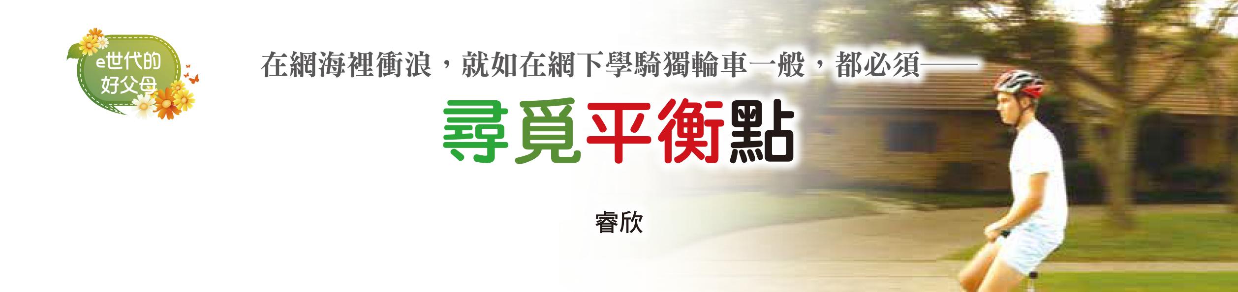 作父母的我們,如果能把駕馭網路需要的平衡力,看成一種必須不斷調整的掙扎,就不會輕易拋一句:「上網可以,但要平衡!」給兒女,以為他們掙扎,純粹是因為還沒找到平衡點。