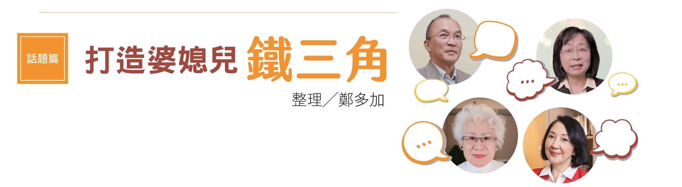 以前婆媳關係出現問題,媳婦受苦、受傷的比較多;現在婆婆受苦、受傷的反而比較多了。往昔「多年媳婦熬成婆」,娶媳婦很風光,現在娶媳婦搞不好是娶到「婆婆」了。然而,在婆媳問題中,如果作兒子的能認清且扮好自己的角色,「婆」「媳」「兒」就能成為鐵三角,建立鞏固緊密的家庭架構。 放下身段改善關係 廖愛梅師母(泰國真愛家庭協會總幹事) 我從結婚開始,就進入跨文化的家庭。我是臺灣人嫁到香港,當時已七、八十歲的婆婆是潮州人,語言的隔閡造成溝通上常有誤解、誤會,我需要調適自己。我們在飲食、生活、養兒育女各方面,有很多分歧。當時她還沒信主,我就盡量做到讓她至少不討厭我;她不討厭我,我才能向她傳福音。我戰戰兢兢地向上帝禱告,求主幫助,給我恩典。 一次我們之間有了誤會,她去向女兒投訴。原來婆婆完全誤解我閩南話的意思,我不知該怎麼跟她解釋。婆婆回來後,我想作晚輩的總該先道歉,我就說:「婆婆,對不起,我講錯話了,請您原諒,大人不計小人過。」她大受感動,說這輩子從來沒有人向她道過歉,自此對我大為改觀,願意跟我親近,我也可以開始跟她傳福音了。 她41歲才生了我先生,之後這麼多年,每天晚上幾乎只能睡三個小時。我想機會來了,跟她說:「婆婆,我為您禱告好嗎?求主耶穌幫助您晚上可以睡得好。」她以前都拒絕的,那次之後就同意了。我為她禱告,她心想:「媳婦跟我道歉,如果她的耶穌能幫助我睡眠的話,我就信耶穌。」禱告後的第二天,她說:「40年來,我從來沒有睡得這麼好。」上帝就透過這個方式讓我體驗聖靈的工作。後來她信了耶穌, 主動退位讓賢 胡慧玲牧師(本會事工副會長) 過去我當媳婦,做了很多不對的事。後來當婆婆,就好好學習。在教課時,我常常跟身為婆婆的學生說:「你們應該要退位讓賢。」過去兒子心目中母親是「第一夫人」,現在娶了媳婦,二人成為一體,妻子理當成為「第一夫人」。 智慧的婆婆第一件事,就要學會退位讓賢;第二是不要再探察或參與小夫妻的私生活;第三是多多稱讚媳婦,妳越誇她,她就會越好。眼睛睜大一點,多去發現她的優點。能幫忙就幫忙,但無需不請自來,只需當個好顧問,有問才說,沒問就閉嘴。彼此都不要過分期待。